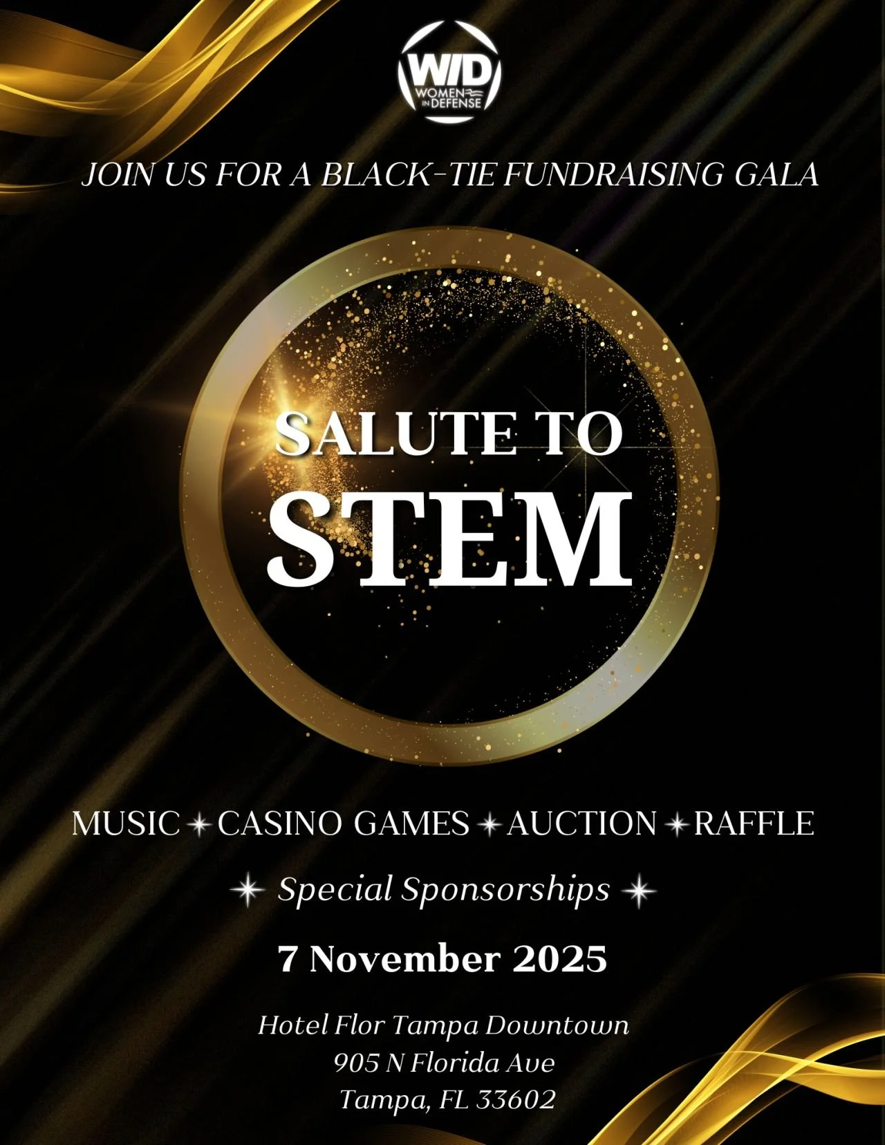 Mark your calendars for an unforgettable evening! On Friday, November 7, 2025, the Women in Defense Greater Tampa Bay Chapter invites you to our annual fundraiser, Salute to STEM. This elevated and classy event promises to be a night to remember, celebrating innovation, progress, and the bright future of STEM.